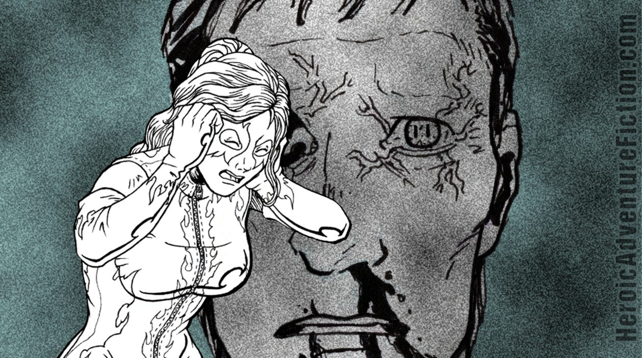 “Eva! Eva, snap out of it!” He grabbed her forearm, only to quickly jerk his hand back, yelping in pain. Even through his gloves, he felt like he’d just touched a hot kettle.